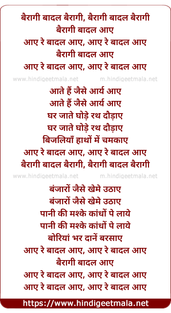 Lyrics of Bairagi Baadal - बैरागी बादल बैरागी, बैरागी बादल बैरागी