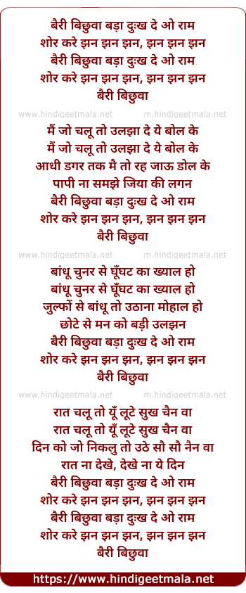 Lyrics of Bairi Bichhua Bada Dukh De - बैरी बिछुवा बड़ा दुःख दे