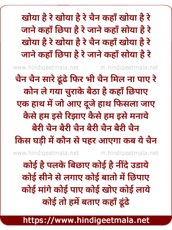 Lyrics of Bairie Chain - खोया है रे खोया है रे चैन कहाँ खोया है रे
