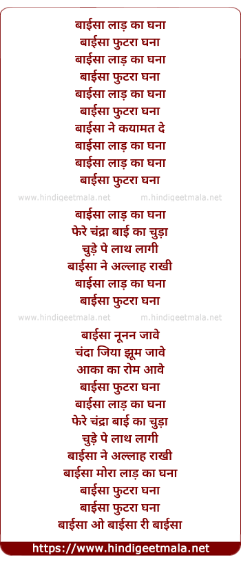 Poetic Translation - Lyrics of Baisaa - बाईसा