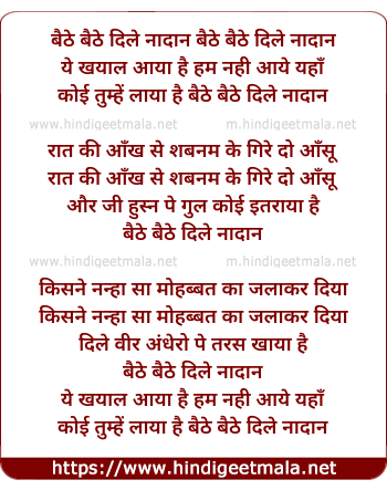 Lyrics of Baithe Baithe Dile Nadan - बैठे बैठे दिले नादान