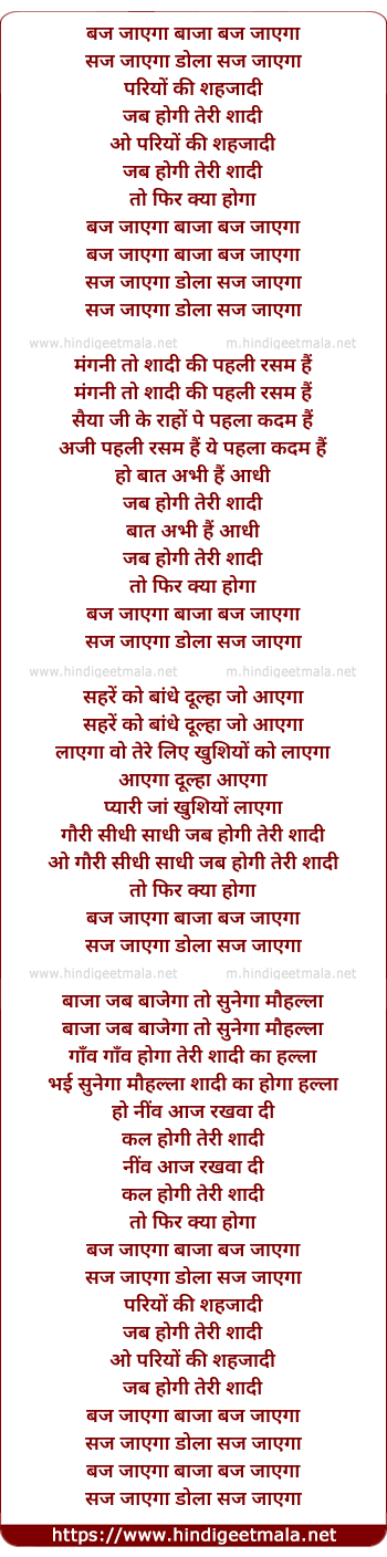 Lyrics of Baj Jayega Baja Baj Jayega - बज जायेगा बाजा बज जायेगा