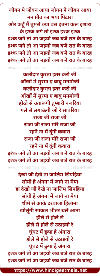 ishq jage to aa jaiyo jab baje raat ke barah