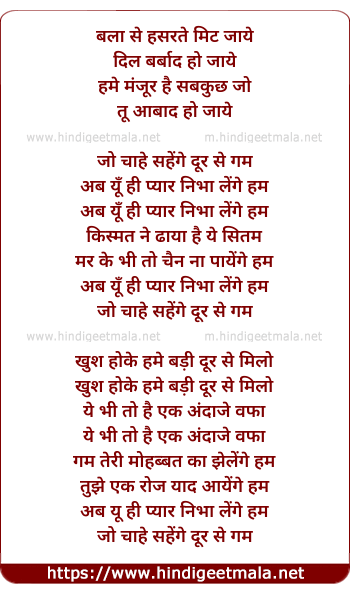 Lyrics of Bala Se Hasrate Meet Jaye - बला से हसरते मिट जाये
