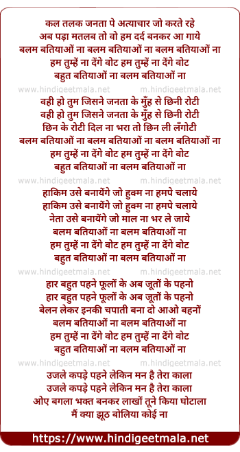 Lyrics of Balam Batiyao Na - बलम बतियाओं ना