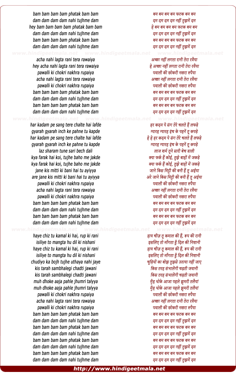Comments for lyrics of song "Bam Bam Bam Phatak Bam Bam (Male)"