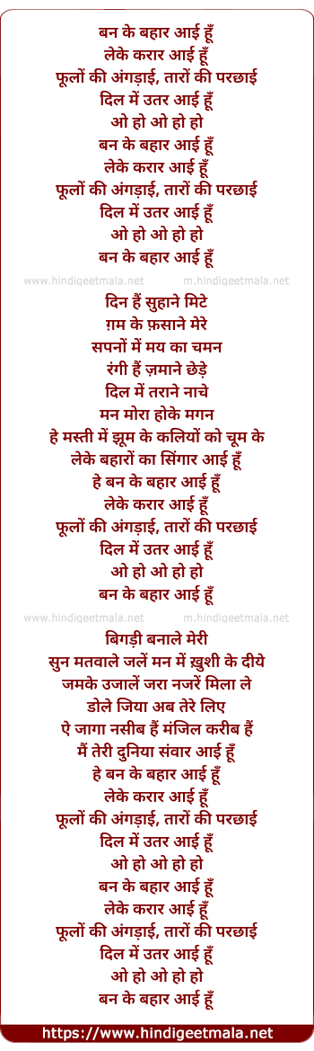 Lyrics of Ban Ke Bahaar Aayi Hu - बन के बहार आई हूँ