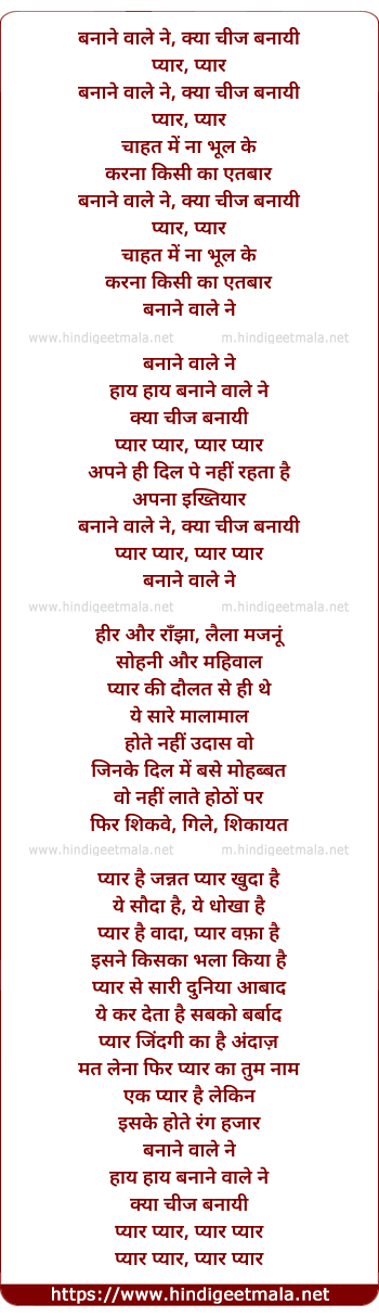 Poetic Translation - Lyrics of Banane Wale Ne (I) - बनाने वाले ने