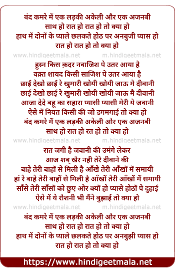 Lyrics of Band Kamare Mein Ek Ladaki Akeli - बंद कमरे में एक लड़की अकेली