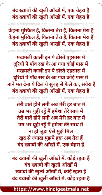 Lyrics of Band Khwabon Ki - बंद ख़्वाबों की