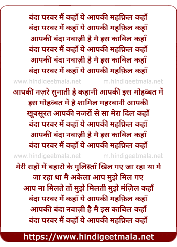 Lyrics of Banda Parwar Mai Kaha Ye Aapki Mahfil Kaha - बंदा परवर मैं कहाँ ये आपकी महफ़िल कहाँ