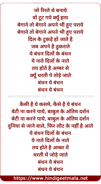 Lyrics of Bandhan - बंधन
