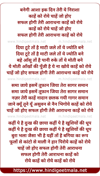 Lyrics of Banegi Aashaa Ik Din, Kaahe Ko Roye (Safal Hogi Teri Aradhana) - बनेगी आशा इक दिन, काहे को रोये (सफल होगी तेरी अराधना)