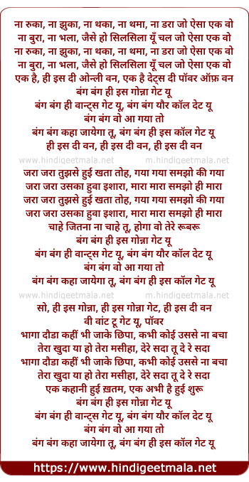 bang bang kaha jayega tu, bang bang he is call get u