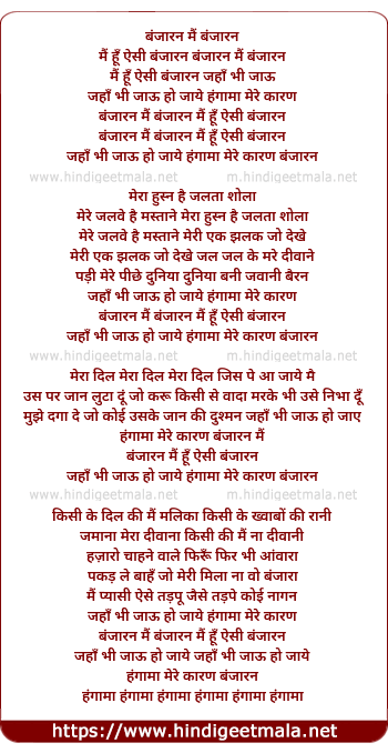jaha bhi jau ho jaye hangama mere kaaran banjaaran