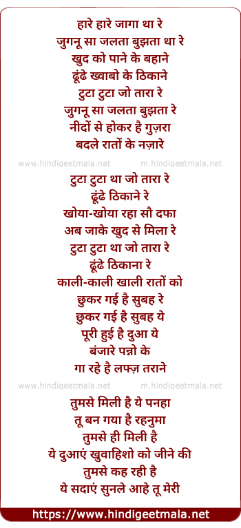 haare haare jaaga tha re