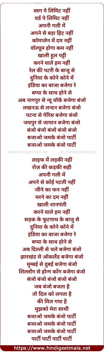 Lyrics of Banjo Party - बेन्जो पार्टी