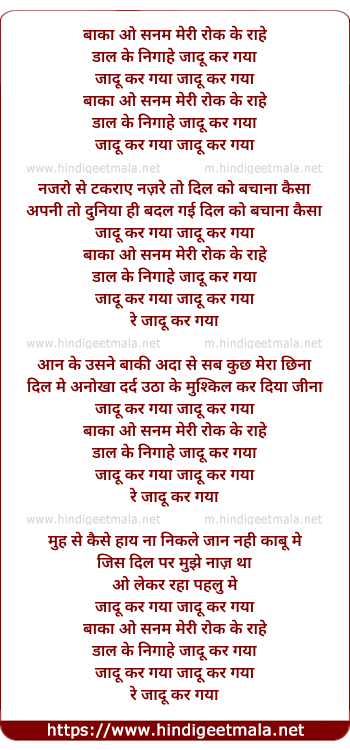 Lyrics of Banka Wah Sanam Meri Rok Ke Raahe - बाका वाह सनम मेरी रोक के राहे