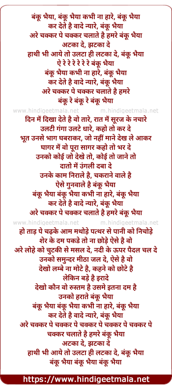 Lyrics of Banku Bhaiya Kabhi Naa Hare - बंकू भैया कभी ना हारे