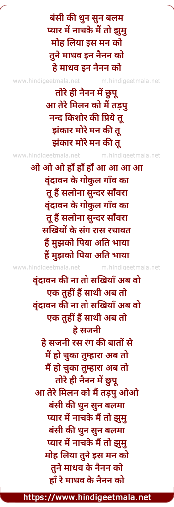 Lyrics of Bansi Ki Dhun Sun Balmu - बंसी की धुन सुन बलम