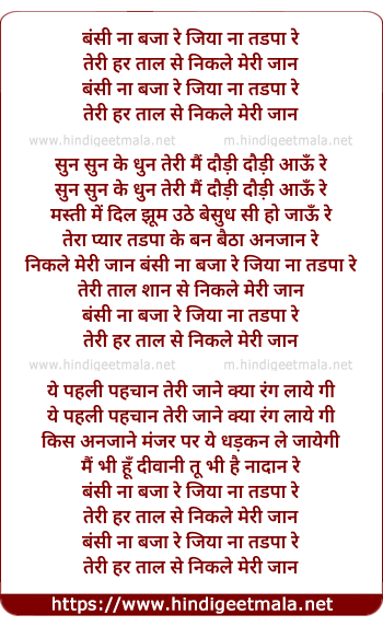 Lyrics of Bansi Na Baja Re Jiya Na Tadpa Re - बंसी ना बजा रे जिया ना तडपा रे