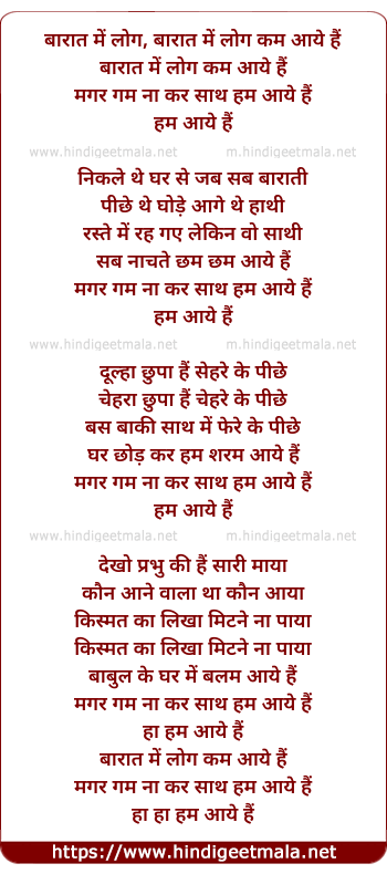 Lyrics of Baraat Me Log Kam Kyo Aaye Hai - बारात में लोग कम क्यों आये हैं