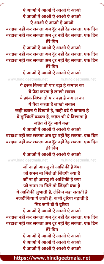 Lyrics of Bardaasht Nahi Kar Sakta (Remix) - ऐ आओ ऐ आओ ऐ आओ ऐ आओ