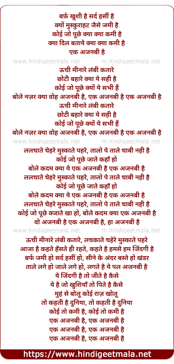 bole najar kya woh ajnabi hai, ek ajnabi hai ek ajnabi hai