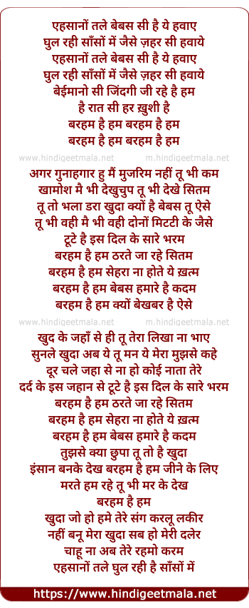 Poetic Translation - Lyrics of Barham Hai Hum - बरहम है हम