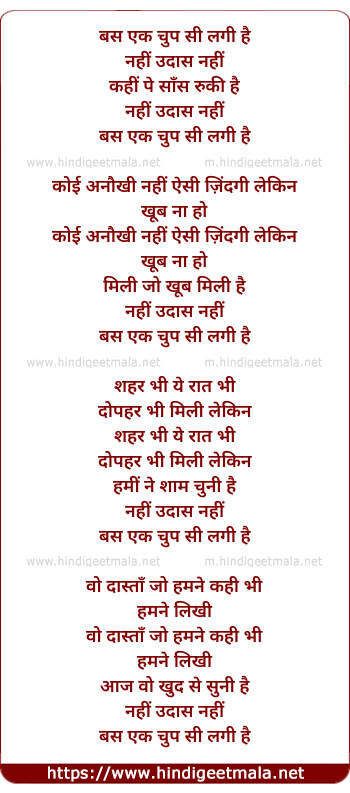 Lyrics of Bas Ek Chup Si Lagi Hai (Male) - बस एक चुप सी लगी है