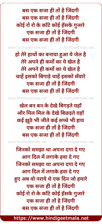 Lyrics of Bas Ek Saza Hi To Hai Zindagi - बस एक सजा ही तो है जिंदगी