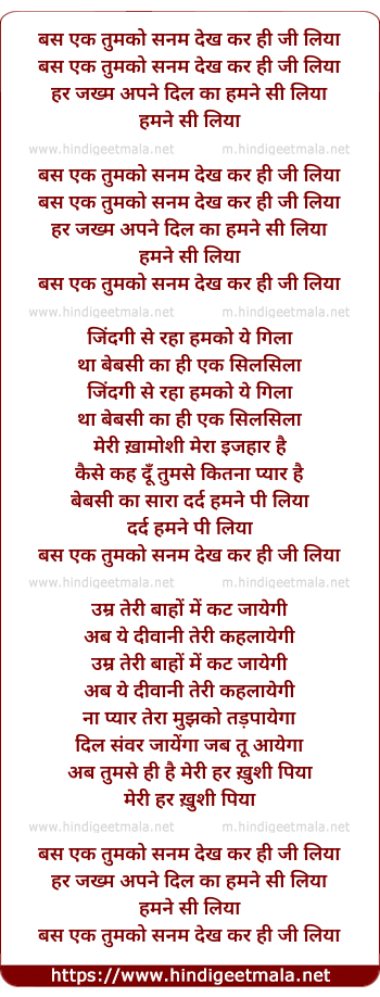 bas ek tumko sanam dekh ker hi jee liya