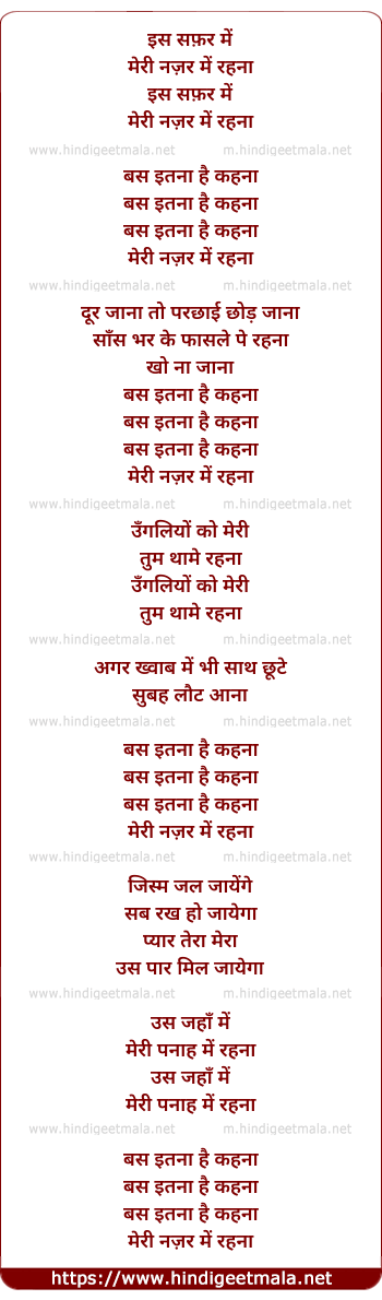 Lyrics of Bas Itna Hai Kehna - बस इतना है कहना