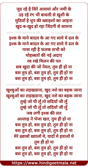 bas tum ho, bas tum ho, tum hi ho na