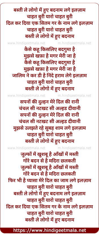 Lyrics of Basti Ke Logo Me Huye Badnaam - बस्ती के लोगो में हुए बदनाम