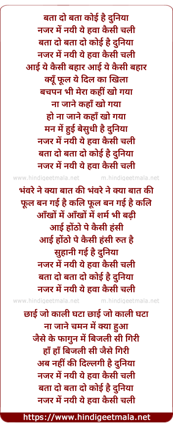 Lyrics of Bata Do Koi Hai Duniya - बता दो बता कोई है दुनिया