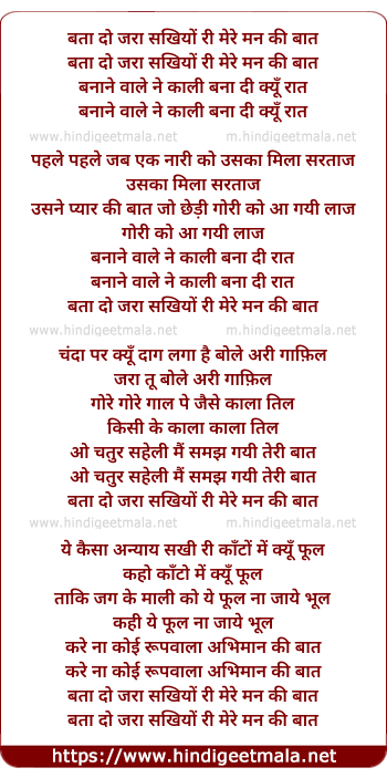 Lyrics of Bata Do Zara Sakhiyo Ri Mere - बता दो जरा सखियों री मेरे