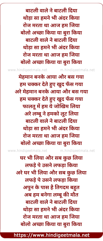Poetic Translation - Lyrics of Batli Wali Ne - बाटली वाले ने