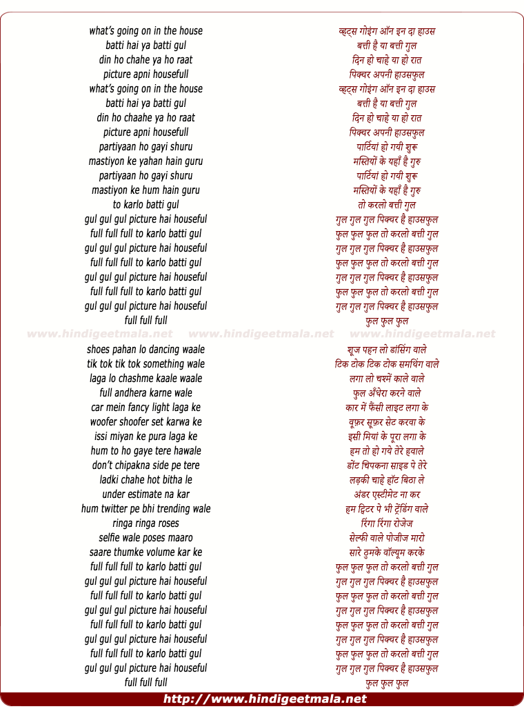 Lyrics of Batti Gul - व्हट्स गोइंग ऑन इन दा हाउस