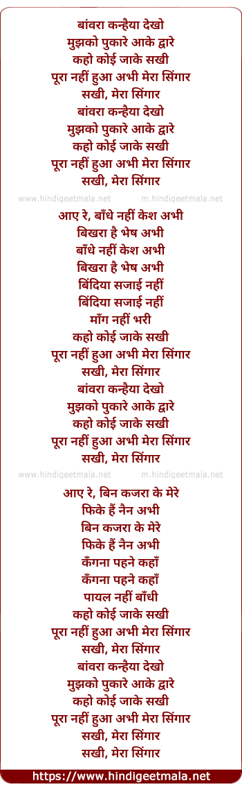 Lyrics of Bawara Kanhaiya Dekho Mujhko Pukare - बांवरा कन्हैया देखो मुझको पुकारे