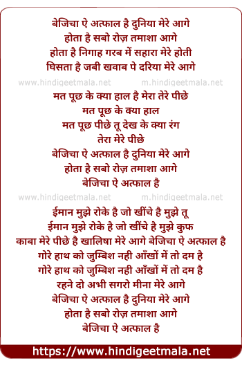 Lyrics of Bazicha Ae Aftal Hai Duniya Mere Aage - बेजिचा ऐ अत्फाल है दुनिया मेरे आगे