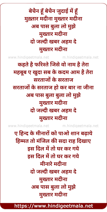Lyrics of Bechain Judai Me Hu - बेचैन हूँ बेचैन जुदाई में हूँ