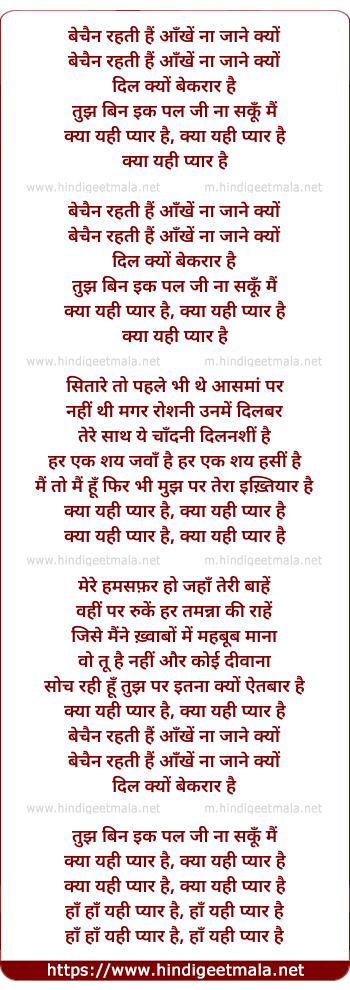 Lyrics of Bechain Rahti Hai Aankhe Na Jane Kyu - बेचैन रहती हैं आँखें ना जाने क्यों