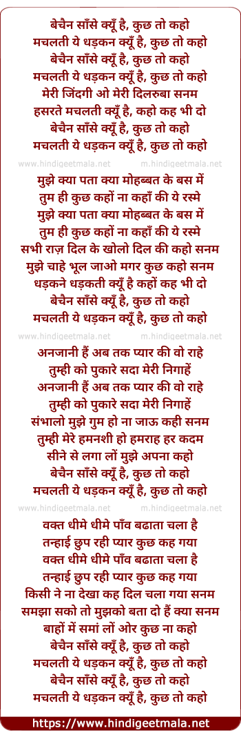 Lyrics of Bechain Sanse Kyu Hai, Kuchh To Kaho - बेचैन साँसे क्यूँ है, कुछ तो कहो