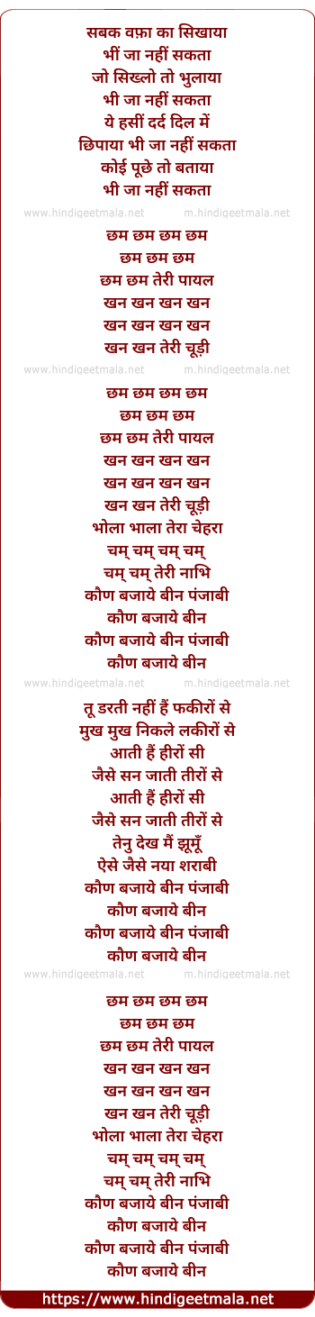 Lyrics of Been Bajaaye Punjabi - सबक वफ़ा का सिखाया