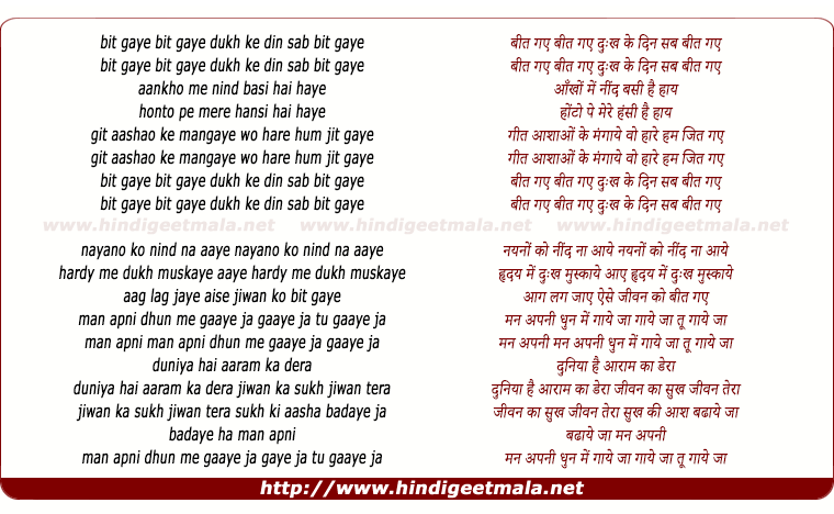 Lyrics of Beet Gaye Dukh Ke Sab Din - बीत गए दुःख के सब दिनbit gaye bit gaye dukh ke din sab bit gaye