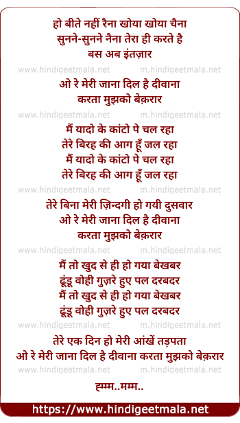 o re meri jaana dil hai deewana karta mujhko bekarar