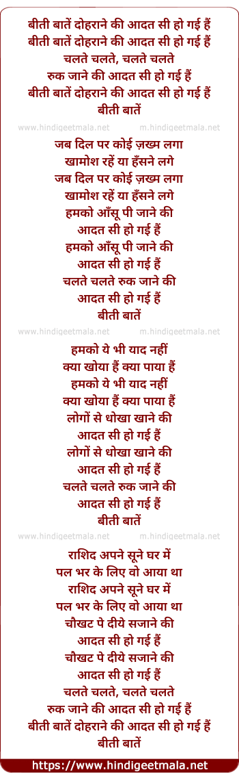 beeti baate dohrane ki aadat si ho gayi hai