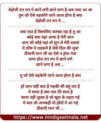 Lyrics of Behoshi Tan Man Pe Chane Lagi - बेहोशी तन मन पे छाने लगी