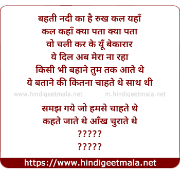 Lyrics of Behti Nadi Ka Hai Rukh - बहती नदी का है रुख कल यहाँ